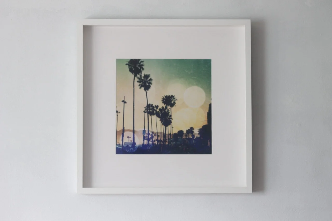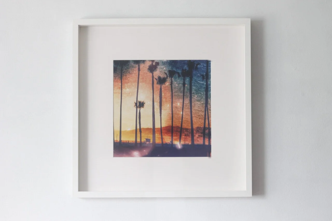 wall art cyan dreams $50.00 sky pt. 1 $50.00 sky pt. 2 $50.00 rainbow sunset $50.00 lemonade park $50.00 unicorn $50.00 venice sign $50.00 tropical sparkles $50.00 jasmine shadows $50.00 banana $50.00 boardwalk buzz $50.00 white frame - 19 3/4" x 19 3/4" $25.00